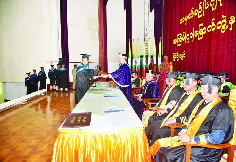 စစ်တက္ကသိုလ်၏ အကြိမ် (၇၀) မြောက် ဘွဲ့နှင်းသဘင်အခမ်းအနားကို ယနေ့မွန်းလွဲပိုင်းတွင် စစ်တက္ကသိုလ်ဘွဲ့နှင်းသဘင်ခန်းမ၌ ကျင်းပရာ စစ်တက္ကသိုလ်ကျောင်းအုပ်ကြီး ဗိုလ်မှူးချုပ် သူရဇော်လွင်စိုး၊ စစ်တက္ကသိုလ်ပါမောက္ခချုပ် ဗိုလ်မှူးချုပ် သိန်းလွင်၊ စစ်တက္ကသိုလ်မှ ပညာရေးအဖွဲ့ဝင်များနှင့် ကျောင်းဆင်း အရာရှိများ၏ မိဘဆွေမျိုးများ တက်ရောက်ကြသည်။