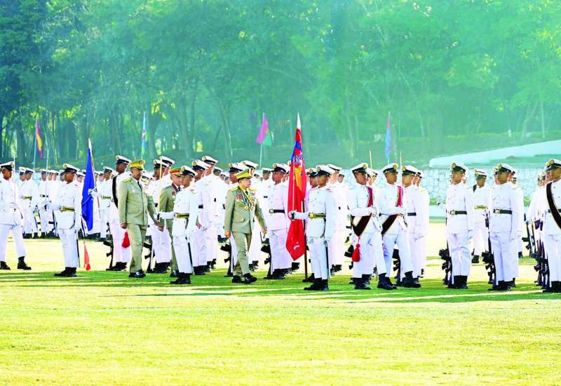 စစ်တက္ကသိုလ် ဗိုလ်လောင်းသင်တန်းအမှတ်စဉ် (၆၇) သင်တန်းဆင်းဂုဏ်ပြုစစ်ရေးပြအခမ်းအနားကို ယနေ့နံနက်ပိုင်းတွင် ပြင်ဦးလွင်မြို့၊ စစ်တက္ကသိုလ် စစ်ရေးပြကွင်း၌ ကျင်းပပြုလုပ်ရာ နိုင်ငံတော်လုံခြုံရေးနှင့်အေးချမ်းသာယာရေးကော်မရှင်ဥက္ကဋ္ဌ တပ်မတော်ကာကွယ်ရေးဦးစီးချုပ် ဗိုလ်ချုပ်မှူးကြီး သတိုးမဟာသရေစည်သူ သတိုးသီရိသုဓမ္မ မင်းအောင်လှိုင် တက်ရောက်မိန့်ခွန်းပြောကြားသည်။