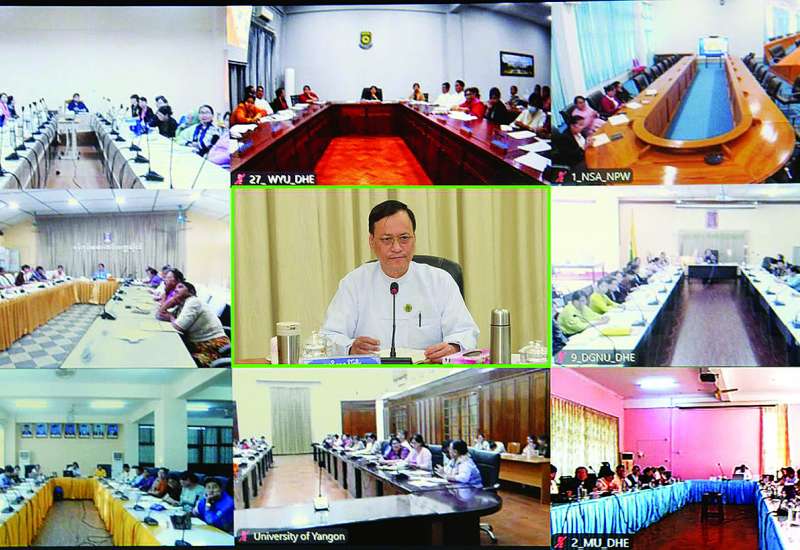 ပညာရေးဝန်ကြီးဌာန သိပ္ပံပွဲတော်အောင်မြင်စွာ ကျင်းပရေးနှင့် တက္ကသိုလ်ဝင် စာမေးပွဲမအောင်မြင်သည့် ကျောင်းသား ကျောင်းသူများအတွက် အလုပ်အကိုင်ရရှိရေး ကျွမ်းကျင်မှုဆိုင်ရာသင်တန်းများ ဖွင့်လှစ်နိုင်ရေး ညှိနှိုင်းဆွေးနွေးပွဲကို ယနေ့မွန်းလွဲပိုင်းတွင် နေပြည်တော်ပညာရေးဝန်ကြီးဌာန ရုံးအမှတ် (၁၃) ရှိ အစည်းအဝေးခန်းမ၌ ကျင်းပသည်။