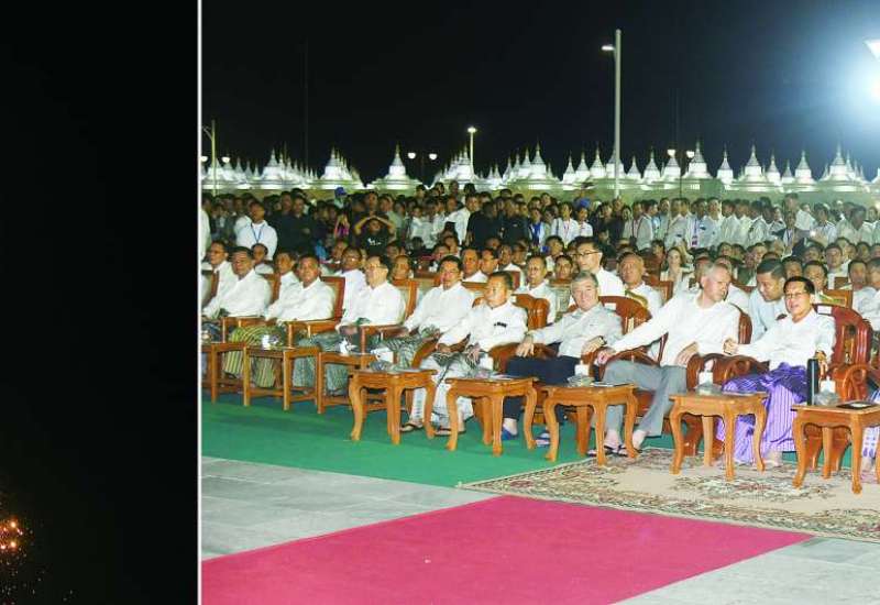 ပြည်ထောင်စုနယ်မြေ နေပြည်တော် ဒက္ခိဏသီရိမြို့နယ်ရှိ မာရဝိဇယဗုဒ္ဓရုပ်ပွားတော်မြတ်ကြီး ၂၀၂၅ ခုနှစ်၊ တန်ဆောင်တိုင်မီးထွန်းပွဲတော် မီးပုံးပျံလွှတ်တင်ပူဇော်ပြိုင်ပွဲနှင့် မသိုးရွှေကြာသင်္ကန်း ရက်လုပ်ပူဇော်ပြိုင်ပွဲ ဆုချီးမြှင့်ပွဲအခမ်းအနားကို ယနေ့ညပိုင်းတွင် မာရဝိဇယဗုဒ္ဓဥယျာဉ်တော် အတွင်းရှိ ရေပန်းရင်ပြင်တော်၌ စည်ကားသိုက်မြိုက်စွာဖြင့် ကျင်းပပြုလုပ်ရာ ပြည်ထောင်စုသမ္မတမြန်မာနိုင်ငံတော်ယာယီသမ္မတ နိုင်ငံတော်လုံခြုံရေးနှင့်အေးချမ်းသာယာရေးကော်မရှင်ဥက္ကဋ္ဌ ဗိုလ်ချုပ်မှူးကြီး မင်းအောင်လှိုင် တက်ရောက်ချီးမြှင့်သည်။