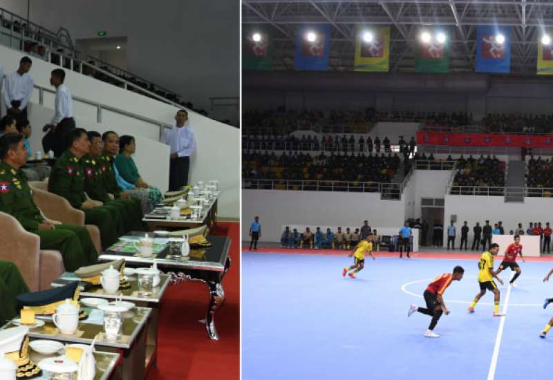၂၀၂၅ ခုနှစ် တပ်မတော်ကာကွယ်ရေးဦးစီးချုပ်ဖလား တပ်မတော်(ကြည်း၊ ရေ၊ လေ) ဖူဆယ်ပြိုင်ပွဲ ဖွင့်ပွဲအခမ်းအနားကို ယနေ့နံနက်ပိုင်းတွင် နေပြည်တော်ရှိ ဇေယျာသီရိတပ်မတော်အားကစားရုံ(A)ရုံ၌ ကျင်းပပြုလုပ်ရာ နိုင်ငံတော်လုံခြုံရေးနှင့်အေးချမ်းသာယာရေးကော်မရှင်ဥက္ကဋ္ဌ တပ်မတော်ကာကွယ်ရေးဦးစီးချုပ် ဗိုလ်ချုပ်မှူးကြီး မင်းအောင်လှိုင် ကိုယ်စား တပ်မတော်အားကစားနှင့်ကာယပညာအုပ်ချုပ်ရေးအဖွဲ့ဥက္ကဋ္ဌ စစ်ရေးချုပ် ဒုတိယဗိုလ်ချုပ်ကြီး ဖုန်းမြတ်တက်ရောက်သည်။