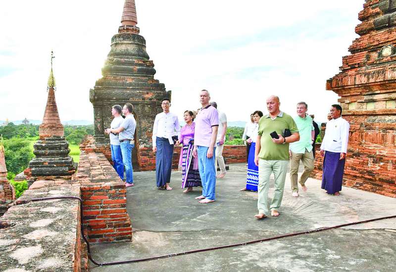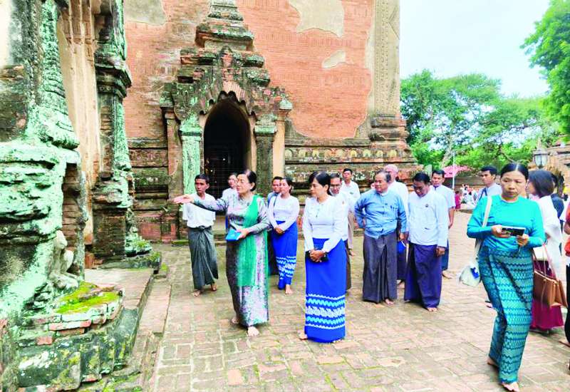 သာသနာရေးနှင့်ယဉ်ကျေးမှုဝန်ကြီးဌာန ဒုတိယဝန်ကြီး ဒေါ်နုမြဇံသည် ယနေ့နံနက်ပိုင်းတွင် ပုဂံယဉ်ကျေးမှုအမွေအနှစ်ဒေသရှိ ရွှေစည်းခုံစေတီတော်မြတ်ကြီး၊ ထီးလိုမင်းလိုဘုရားနှင့် သိကြားပုန်းဘုရားများအား ဖူးမြော်ကြည်ညို၍ သိကြားပုန်းဘုရားရှိ တိုက်မနှင့် အာရုံခံများတွင် ဗုဒ္ဓဝင်ခန်းများနှင့် ဗုဒ္ဓရုပ်ပွားတော်များ ထည့်သွင်းပူဇော်ထားမှု၊ သိကြားပုန်းဘုရားအနီး ပျိုးခြံတည်ဆောက်ခြင်း၊ ရင်ပြင်တိုးချဲ့ခြင်းနှင့် ရှေးဟောင်းအဆောက်အအုံနှင့် ရှေးဟောင်းနေရာဒေသ မြင်ကွင်းမထိခိုက်စေဘဲ ဒေသမျိုးရင်းပင်များဖြစ်သည့် မန်ကျည်းပင်၊ ထန်းပင်များ စိုက်ပျိုးထားရှိမှုကို ကြည့်ရှုစစ်ဆေးသည်။