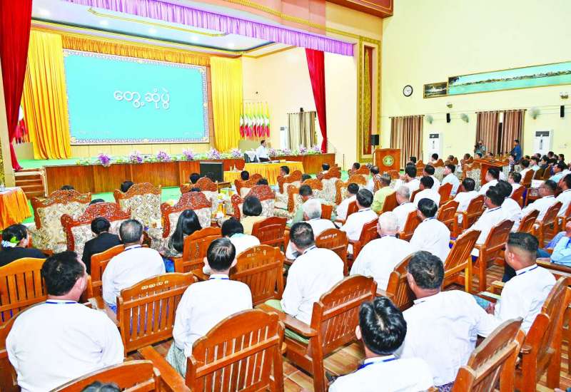 ပြည်ထောင်စုသမ္မတမြန်မာနိုင်ငံတော် ယာယီသမ္မတ နိုင်ငံတော်လုံခြုံရေးနှင့်အေးချမ်းသာယာရေးကော်မရှင်ဥက္ကဋ္ဌ ဗိုလ်ချုပ်မှူးကြီး မင်းအောင်လှိုင်သည် ဧရာဝတီတိုင်းဒေသကြီး၊ ပုသိမ်မြို့ရှိ ဌာနဆိုင်ရာတာဝန်ရှိသူများနှင့် ရပ်မိရပ်ဖများအား ယနေ့ မွန်းလွဲပိုင်းတွင် တွေ့ဆုံ၍ ဒေသဖွံ့ဖြိုးတိုးတက်ရေးဆိုင်ရာများအား ဆွေးနွေးပြောကြားသည်။