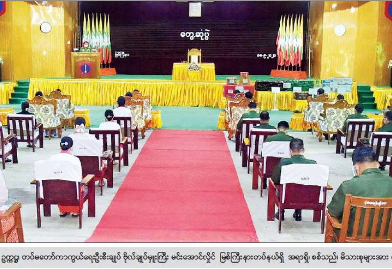 နိုင်ငံတော်စီမံအုပ်ချုပ်ရေးကောင်စီ ဥက္ကဋ္ဌ၊ နိုင်ငံတော်ဝန်ကြီးချုပ် ဗိုလ်ချုပ်မှူးကြီး မင်းအောင်လှိုင်သည် ယနေ့မွန်းလွဲပိုင်းတွင် ရှမ်းပြည်နယ်အစိုးရအဖွဲ့ဝင်များ၊ ကိုယ်ပိုင် အုပ်ချုပ်ခွင့်ရတိုင်း၊ ဒေသများမှ တာဝန်ရှိသူများ၊ ဌာနဆိုင်ရာဝန်ထမ်းများ၊ ခရိုင်၊ မြို့နယ် စီမံအုပ်ချုပ်ရေးအဖွဲ့ဝင်များနှင့် မြို့မိမြို့ဖ များအား လားရှိုးမြို့ရှိ ရှမ်းပြည်နယ်အစိုးရအဖွဲ့ခွဲရုံး အစည်းအဝေးခန်းမ၌ တွေ့ဆုံအမှာစကား ပြောကြားသည်။