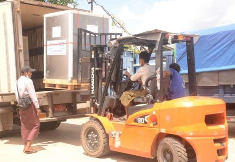 စီးပွားရေးနှင့် ကူးသန်းရောင်းဝယ်ရေး ဝန်ကြီးဌာနအနေဖြင့် ကိုဗစ်-၁၉ ရောဂါ ကာကွယ်၊ ထိန်းချုပ်၊ ကုသရေးဆိုင်ရာ ပစ္စည်းများကို လေကြောင်း၊ ရေကြောင်းနှင့် နယ်စပ်ကုန်သွယ် ရေးစခန်းများမှ နှောင့်နှေးကြန့် ကြာမှုမရှိ တင်သွင်းနိုင်ရေးအတွက် အချိန်နှင့်တစ်ပြေးညီ စီစဉ်ဆောင်ရွက်ပေး လျက်ရှိရာ ယနေ့တွင် ဆိပ်ကမ်းများနှင့် မူဆယ်၊ ချင်းရွှေဟော်၊ ကန်ပိုက်တီး၊ မြဝတီနှင့် တာချီလိတ် စခန်း ငါးခုတို့မှ တင်သွင်းရာ၌ ကုမ္ပဏီ ၁၀ ခုမှ ယာဉ်စီးရေ ၁၆ စီးဖြင့်အောက်ဆီဂျင်(အရည်) Bowser ယာဉ်သုံးစီးဖြင့် ၅၆ တန်၊အောက်ဆီဂျင်(အိုးခွံ) ၄၆၃၀၊ Oxygen Plant ရှစ်ခု၊ အိမ်သုံး Oxygen Concentrator ၁၀ ခု၊ PPE ဝတ်စုံ ၅၀၀ နှင့် နှာခေါင်း စည်း (Mask) ၁၁ တန် တင်သွင်းခဲ့သည်။ အောက်ဆီဂျင်(အရည်) Bowser ယာဉ်သုံးစီးမှာ ရန်ကုန် မြို့သို့ တစ်စီး၊ မန္တလေးမြို့သို့ နှစ်ဆီးဖြစ်ပြီး Oxygen Plant ရှစ်ခုမှာ ရန်ကုန်မြို့သို့နှစ်ခု၊ ပခုက္ကူမြို့သို့ နှစ်ခု၊ မုံရွာမြို့၊မြိုင်မြို့ ဂန့်ဂေါမြို့နှင့် ထန်ထလန် မြို့များသို့ တစ်ခုစီဖြစ်ကြောင်း သိရှိရသည်။