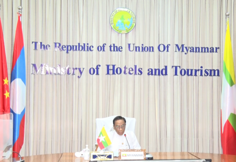 (၄၈) ကြိမ်မြောက် မဟာမဲခေါင်ဒေသခွဲ ခရီးသွားလုပ်ငန်းအဖွဲ့အစည်းအဝေးနှင့် မဲခေါင် ခရီးသွားလုပ်ငန်း ညှိနှိုင်းရေးမှူးရုံး ဘုတ်အဖွဲ့အစည်းအဝေးကို ယနေ့မွန်းလွဲပိုင်းတွင် virtual ဖြင့် ကျင်းပရာ ဟိုတယ်နှင့်ခရီးသွား လာရေးဝန်ကြီးဌာန၊ ပြည်ထောင်စုဝန်ကြီး ဒေါက်တာဌေးအောင် online မှ ပါဝင်တက်ရောက်သည်။