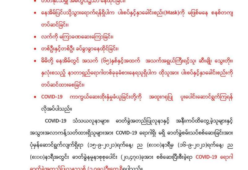 ကိုဗစ်-၁၉ ရောဂါစောင့်ကြပ်ကြည့်ရှုမှုနှင့်ပတ်သက်၍သတင်းထုတ်ပြန်ခြင်း (၁၆-၉-၂၀၂၁) ရက်နေ့၊ ည (၈:၀၀)နာရီ