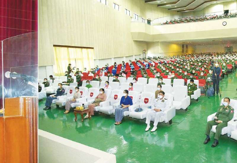တပ်မတော်၏ အဓိကတာဝန်သည် နိုင်ငံတော်ကာကွယ်ရေးတာဝန်ဖြစ်ပြီး လိုအပ်ချက်အရ နိုင်ငံတော်၏ တာဝန်များကို ခေတ္တတာဝန်ယူ ထမ်းဆောင်နေရခြင်းဖြစ်ကြောင်း၊ စစ်စည်းကမ်း သည် တပ်မတော်၏ ကျောရိုးပင်ဖြစ်သဖြင့် စည်းကမ်းသေဝပ်၍ အမိန့်နာခံမှုကောင်းစွာဖြင့် လုပ်ဆောင်ကြစေလိုကြောင်းနှင့် မိမိတို့တာဝန် ထမ်းဆောင်သည့် တပ်၊ တပ်မတော်၊ ဒေသနှင့် တိုင်းပြည်၏ အကျိုးစီးပွားကို ကောင်းမွန်တိုးတက်အောင် မိမိတို့ တတ်စွမ်းသရွေ့ ကြိုးပမ်း ဆောင်ရွက်ရမည်ဖြစ်ပြီး မိမိကိုယ်ကို ထိန်းသိမ်း နေထိုင်ကြရမည်ဖြစ်ကြောင်း နိုင်ငံတော် စီမံအုပ်ချုပ်ရေးကောင်စီဥက္ကဋ္ဌ တပ်မတော်ကာကွယ်ရေးဦးစီးချုပ် ဗိုလ်ချုပ်မှူးကြီး မင်းအောင်လှိုင် က ယနေ့မွန်းလွဲပိုင်းတွင် ပြင်ဦးလွင်တပ်နယ်ရှိ နည်းပြအရာရှိကြီးများ၊ ကထိက အရာရှိကြီးများ၊ ပါရဂူဆေးမှူးများ၊ ဆရာ၊ ဆရာမများ၊ သန္ဓေအရာရှိ၊ စစ်သည်၊ မိသားစု များအား စစ်တက္ကသိုလ်၊ ဘွဲ့နှင်းသဘင်ခန်းမ၌ တွေ့ဆုံအမှာစကားပြောကြားစဉ် ထည့်သွင်း ပြောကြားသည်။