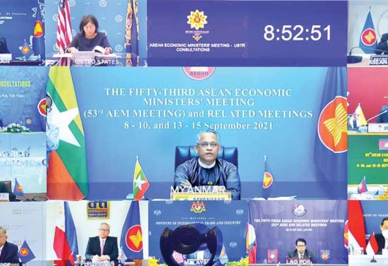 ရင်းနှီးမြှုပ်နှံမှုနှင့် နိုင်ငံခြားစီးပွားဆက်သွယ်ရေး ဝန်ကြီးဌာန ပြည်ထောင်စုဝန်ကြီး ဦးအောင်နိုင်ဦးသည် ယနေ့နံနက် ၇ နာရီမှစတင်၍ ဗီဒီယိုကွန်ဖရင့် ဖြင့်ကျင်းပသည့် အာဆီယံ စီးပွားရေးဝန်ကြီးများနှင့် အမေရိကန်ကုန်သွယ်ရေး ကိုယ်စားလှယ်တို့ အစည်းအဝေး၊ (၅) ကြိမ်မြောက် အာဆီယံ ဟောင်ကောင် (တရုတ်) စီးပွားရေးဝန်ကြီးများ အစည်းအဝေး၊ (၁၈) ကြိမ်မြောက် အာဆီယံ-အိန္ဒိယ စီးပွားရေးဝန်ကြီးများ အစည်းအဝေး၊ (၁၇) ကြိမ်မြောက် အာဆီယံစီးပွားရေးဝန်ကြီးများနှင့် အီးယူ ကုန်သွယ်ရေးကော်မရှင်နာတို့ အစည်းအဝေး နှင့် (၁၀) ကြိမ်မြောက် အာဆီယံ-ရုရှား စီးပွားရေး ဝန်ကြီးများ အစည်းအဝေးတို့ကို နေပြည်တော်ရှိ ရင်းနှီးမြှုပ်နှံမှုနှင့် နိုင်ငံခြားစီးပွားဆက်သွယ်ရေး ဝန်ကြီးဌာန ဝန်ကြီးရုံးမှ ပါဝင်တက်ရောက် သည်။