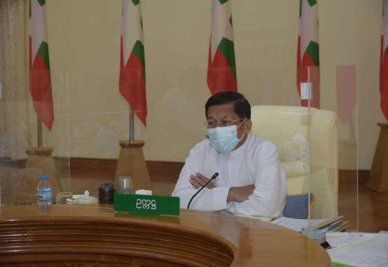 ကိုဗစ် - ၁၉ ရောဂါ ကာကွယ်၊ ထိန်းချုပ်၊ ကုသရေးဆိုင်ရာ (၁၀)ကြိမ်မြောက် ညှိနှိုင်းအစည်းအဝေးကို ယနေ့နံနက်ပိုင်းတွင် နေပြည်တော်ရှိ ဘုရင့်နောင်ရိပ်သာ အစည်းအဝေးခန်းမ၌ ကျင်းပပြုလုပ်ရာ နိုင်ငံတော်စီမံအုပ်ချုပ်ရေးကောင်စီ ဥက္ကဋ္ဌ၊ ပြည်ထောင်စုသမ္မတမြန်မာနိုင်ငံတော် အိမ်စောင့်အစိုးရအဖွဲ့၊ နိုင်ငံတော်ဝန်ကြီးချုပ် ဗိုလ်ချုပ်မှူးကြီး မင်းအောင်လှိုင် တက်ရောက်အမှာစကား ပြောကြားသည်။