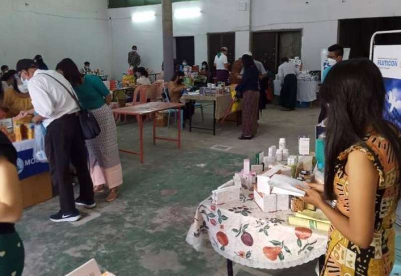 ကိုဗစ်-၁၉ ရောဂါ တတိယလှိုင်းဖြစ်ပွားနေသည့် ကာလအတွင်း ရန်ကုန်တိုင်းဒေသကြီးအတွင်းရှိ ပြည်သူများ၏ ဆေးဝါးလိုအပ်ချက်အား ဖြည့်ဆည်းပေးနိုင်ရေး၊ ဆေးဝါးများလွယ်လင့်တကူ ဝယ်ယူနိုင်ရေး အရည်အသွေးနှင့် ဈေးနှုန်းမှန်ကန်စွာ ရရှိစေရေးအတွက် ရန်ကုန်တိုင်းဒေသကြီး အစိုးရအဖွဲ့၏ ညွှန်ကြားချက်အရ မြန်မာနိုင်ငံ ဆေးနှင့် ဆေးပစ္စည်းလုပ်ငန်းရှင်များအသင်း၏ စီစဉ်မှုဖြင့် ဒုတိယနေရာအဖြစ် ပန်းဘဲတန်းမြို့နယ်၊ ကုန်သည်လမ်းနှင့် ဗိုလ်ဆွန်ပက်လမ်းထောင့်ရှိ မြန်မာအပြည်ပြည်ဆိုင်ရာ ကုန်သွယ်မှုဗဟိုဌာန အဆောက်အအုံ၌ အိမ်သုံးဆေးဝါးများ လက်လီ လက်ကား ဖြန့်ဖြူး ရောင်းချခြင်းအစီအစဉ်ကို ဆောင်ရွက်ခဲ့ရာ ယနေ့တွင် ဆေးနှင့် ဆေးပစ္စည်း ဖြန့်ဖြူးရောင်းချသောကုမ္ပဏီ ၁၆ ခုမှ အိမ်သုံးဆေးဝါး ၂၁၄ မျိုးက ရောင်းချပေးလျက်ရှိပြီး ၃၂ သိန်းကျော်တန်ဖိုးရှိ ဆေးနှင့်ဆေးပစ္စည်းများကို ရောင်းချခဲ့သည်။