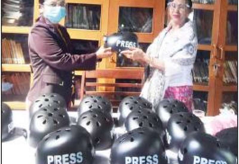 မြန်မာနိုင်ငံ သတင်းမီဒီယာကောင်စီက ပြင်ဦးလွင်မြို့ရှိ သတင်းသမားများအတွက် Press Helmet များ ထောက်ပံ့ပေးအပ်သည့်အခမ်းအနားကို ယနေ့ နံနက်ပိုင်းက ပြင်ဦးလွင်ခရိုင် ပြန်ကြားရေးနှင့် ပြည်သူ့ဆက်ဆံရေးဦးစီးဌာန ရုံးစာကြည့်တိုက်၌ကျင်းပသည်။