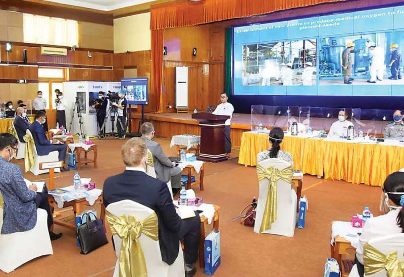 ကိုဗစ်-၁၉ ရောဂါဓာတ်ခွဲအတည်ပြု ပိုးတွေ့လူနာများနှင့် သီးသန့်စောင့် ကြည့်ရမည့်သူများကို ကုသရေးလုပ်ငန်းများ ဆောင်ရွက်ရာတွင် အောက်ဆီဂျင် လိုအပ်ချက်များကို တစ်ဖက် တစ်လမ်းမှ အထောက်အကူပြုစေရန်အတွက် တပ်မတော်နှင့်အလှူရှင်များက အောက်ဆီ ဂျင်အိုးများ၊ ရောဂါကာကွယ်ရေး အထောက်အကူပြုပစ္စည်းများနှင့် အာဟာရဖြည့်စား သောက်ဖွယ်ရာများကို တိုင်းဒေသကြီးနှင့် ပြည်နယ်အသီးသီးရှိ ပြည်သူ့ဆေးရုံများ၊ တပ်မတော် ဆေးရုံများ၊ ကျန်းမာရေးဌာနများ၊ ကိုဗစ်စင်တာများနှင့် လူမှုကူညီရေး အသင်းအဖွဲ့များသို့ ပေးပို့လှူဒါန်းလျက်ရှိသည်။
