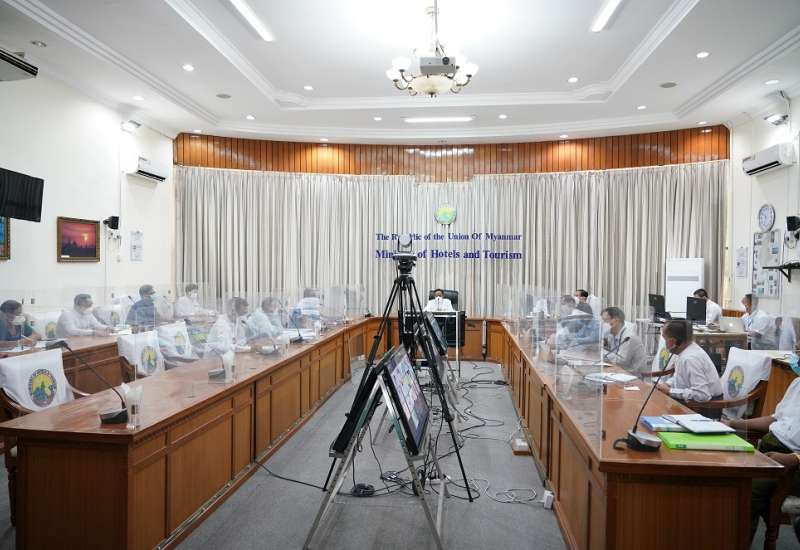 ဟိုတယ်နှင့် ခရီးသွားဆိုင်ရာ ဝန်ဆောင်မှုလုပ်ငန်းများသည် ဘေးကင်းလုံခြုံသော ဝန်ဆောင်မှု လုပ်ငန်းများအဖြစ် နိုင်ငံအဆင့် အသိအမှတ်ပြု လက်မှတ်များ Online မှတစ်ဆင့် လျှောက်ထား အတည်ပြု ထုတ်ပေးနိုင်ရေးအတွက် “Enchanting Myanmar Health and Safety Protocol” Website ကို လွှင့်တင်ထားပြီးဖြစ်ပါကြောင်း ယနေ့နံနက်ပိုင်းက ဟိုတယ်နှင့်ခရီးသွားလာရေး ဝန်ကြီးဌာန ဝန်ကြီးရုံး နီလာခန်းမတွင် ကျင်းပသည့် နေပြည်တော်ကောင်စီအပါအဝင် တိုင်းဒေသကြီး/ ပြည်နယ် ရုံးခွဲတာဝန်ခံများနှင့် ခရီးသွားလုပ်ငန်း ဖွံ့ဖြိုးတိုးတက်ရေးဆိုင်ရာ ညှိနှိုင်းအစည်းအဝေးတွင် ပြည်ထောင်စုဝန်ကြီး ဒေါက်တာဌေးအောင် က ပြောကြားသည်။