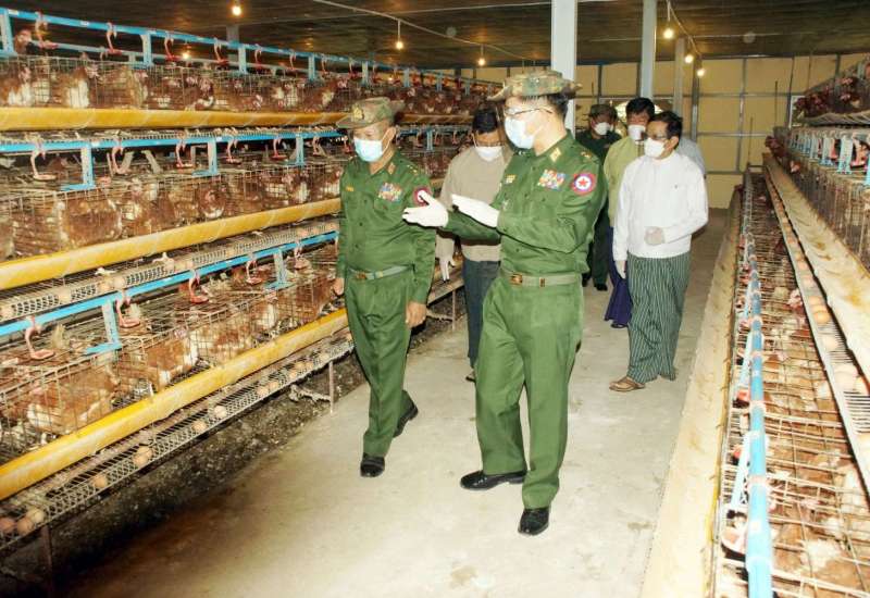 ကိုဗစ်-၁၉ ရောဂါ တတိယလှိုင်း ဖြစ်ပွားမှုကြောင့် ရောဂါကာကွယ်၊ ထိန်းချုပ်၊ ကုသရေး လုပ်ငန်းများ ဆောင်ရွက်နေချိန်တွင် ဒေသတွင်း စားနပ်ရိက္ခာ ဖူလုံရေးနှင့် ပြည်သူများ၏ စားသောက်ရေးကို အထောက်အကူဖြစ်စေရန် အတွက် တိုင်းစစ်ဌာနချုပ် နယ်မြေအသီးသီးရှိ အစိုးရ၊ တပ်မတော်နှင့် ပုဂ္ဂလိကပိုင် ဒေသတွင်း စိုက်ပျိုးမွေးမြူရေးနှင့် အခြားလူသုံး ကုန်လုပ်ငန်းများ ကုန်ထုတ်လုပ်မှုရာနှုန်းပြည့် ထုတ်လုပ်နိုင်ရေး ဆောင်ရွက်လျက်ရှိရာ တိုင်း ဒေသကြီးနှင့် ပြည်နယ်အသီးသီးမှ ဝန်ကြီးချုပ်များ၊ တိုင်းမှူးများနှင့် တာဝန်ရှိ သူများက အဆိုပါနေရာများသို့ သွားရောက်ကြည့်ရှုကြပြီး လိုအပ်သည်များ ဖြည့်ဆည်းဆောင်ရွက် ပေးလျက်ရှိသည်။