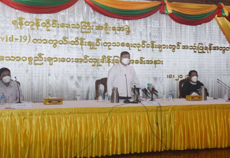 ရန်ကုန်တိုင်းဒေသကြီး အစိုးရအဖွဲ့ ကိုဗစ်-၁၉ ရောဂါ ထိန်းချုပ်ကုသရေးလုပ်ငန်း ဆောင်ရွက်မှု အခြေအနေများ နှင့်စပ်လျဉ်း၍ စာနယ်ဇင်းရှင်းလင်းပွဲကို ယနေ့မွန်းလွဲ ၁ နာရီတွင် ရန်ကုန်တိုင်းဒေသကြီး အစိုးရအဖွဲ့ရုံး၌ ကျင်းပသည်။