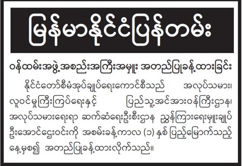 နိုင်ငံတော်အတွင်း ကိုဗစ်-၁၉ ကာကွယ်၊ ထိန်းချုပ်၊ ကုသရေးလုပ်ငန်းများအတွက် အရေးတကြီး လိုအပ်လျက်ရှိသည့် အောက်စီဂျင်အရည်၊ အောက်ဆီဂျင်ဓာတ်ငွေ့၊ အိမ်သုံးအောက်ဆီဂျင် စက်နှင့် ဆေးဝါးနှင့်ဆက်စပ်ပစ္စည်းများ အများပြည်သူရုံးပိတ်ရက်များတွင် ပြတ်လပ်မှုမရှိစေရန် ရန်ကုန် အပြည်ပြည်ဆိုင်ရာလေဆိပ်၊ ပင်လယ်ရေကြောင်းဆိပ်ကမ်းများနှင့်် နယ်စပ်ကုန်သွယ်ရေးစခန်းများ ဖြစ်သည့် တရုတ်နိုင်ငံဘက်မျက်နှာစာမှ မူဆယ်၊ ချင်းရွှေဟော်၊ ကန်ပိုက်တီး၊ လွယ်ဂျယ် နှင့် ထိုင်း နိုင်ငံဘက် မျက်နှာစာမှ မြဝတီ၊ တာချီလိတ်၊ ကော့သောင်း၊ မောတောင်၊ ထီးခီးတို့မှ အဆက်မပြတ် တင်သွင်းခွင့်ပြုလျက်ရှိပါသည်။