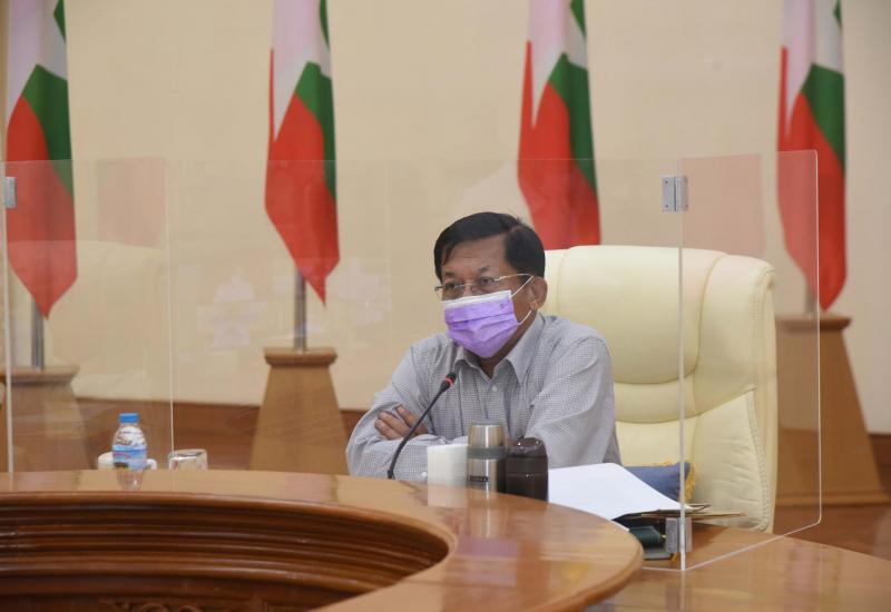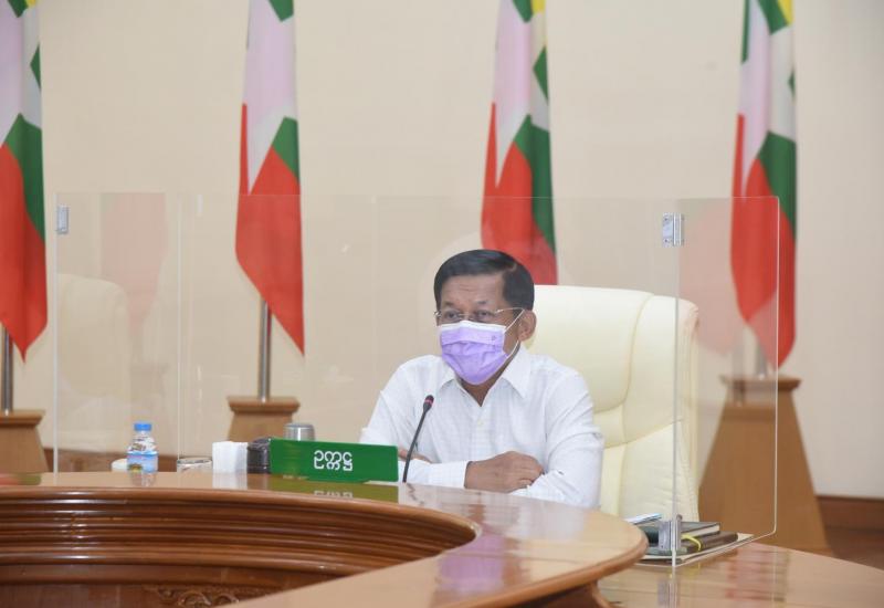 ကိုဗစ် - ၁၉ ရောဂါ ကာကွယ်၊ ထိန်းချုပ်၊ ကုသရေးဆိုင်ရာ ပဉ္စမအကြိမ် ညှိနှိုင်း အစည်းအဝေးကို ယနေ့နံနက်ပိုင်းတွင် နေပြည်တော်ရှိ ဘုရင့်နောင်ရိပ်သာ အစည်းအဝေး ခန်းမ၌ ကျင်းပပြုလုပ်ရာ နိုင်ငံတော်စီမံအုပ်ချုပ်ရေးကောင်စီ ဥက္ကဋ္ဌ ဗိုလ်ချုပ်မှူးကြီး မင်းအောင်လှိုင် တက်ရောက် အမှာစကား ပြောကြားသည်။