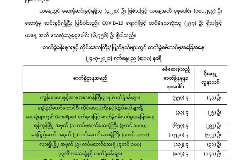 ရန်ကုန်မြို့ပေါ်တွင် ပြည်သူလူထုအခြေပြု ကိုဗစ်-၁၉ ရောဂါရှာဖွေရေး/ကုသရေးဌာနများ တိုးချဲ့ဖွင့်လှစ်နိုင်ရေး ညှိနှိုင်းအစည်းအဝေး (Zoom Meeting) ကို ယနေ့ နံနက် ၁၀ နာရီတွင် ကျန်းမာ ရေးနှင့်အားကစားဝန်ကြီးဌာန COVID-19 Command Center ၌ ကျင်းပသည်။
