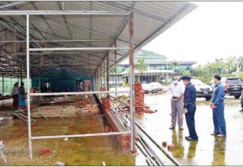 ရန်ကုန်မြို့တော် စည်ပင်သာယာရေးကော်မတီဥက္ကဋ္ဌ မြို့တော်ဝန်ဦးဗိုလ်ဌေးသည် ယနေ့နံနက် ၉ နာရီခွဲတွင် မရမ်းကုန်းမြို့နယ် မြန်မာကွန်ဗင်းရှင်းစင်တာ(MCC) ခန်းမယာဉ်ရပ်နား ရေးကွင်း၌ ကိုဗစ်-၁၉ ရောဂါ သံသယလူနာများထားရှိရန် အဆောင်သစ်ဆောက်လုပ်နေမှုကို သွားရောက်ကြည့်ရှုစစ်ဆေးရာ ရှိုင်းဆောက်လုပ်ရေးကုမ္ပဏီ တာဝန်ရှိသူက အဆောင် သစ်ဆောက်လုပ်နေမှုကို ရှင်းလင်းတင်ပြပြီး မြို့တော်ဝန်က လိုအပ်သည်များ မှာကြား ဖြည့်ဆည်း ဆောင်ရွက်ပေးသည်။