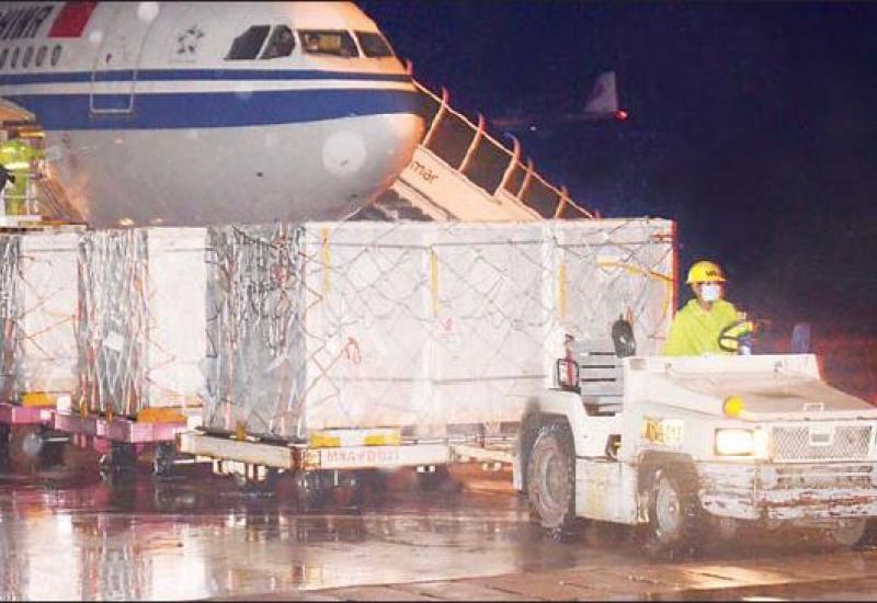 တရုတ်နိုင်ငံအစိုးရမှ လှူဒါန်းသည့် ကိုဗစ်- ၁၉ ကာကွယ်ဆေး နှစ်သန်းအနက် တတိယအသုတ် Sinopharm ကာကွယ်ဆေး ၇၃၆၀၀၀ နှင့် ဆေးထိုးအပ် ၈၄၈၀၀၀ တို့ တင်ဆောင်လာသော Air China လေယာဉ်သည်ယနေ့ညပိုင်းတွင် ရန်ကုန်အပြည်ပြည် ဆိုင်ရာလေဆိပ်သို့ ရောက်ရှိလာသည်။