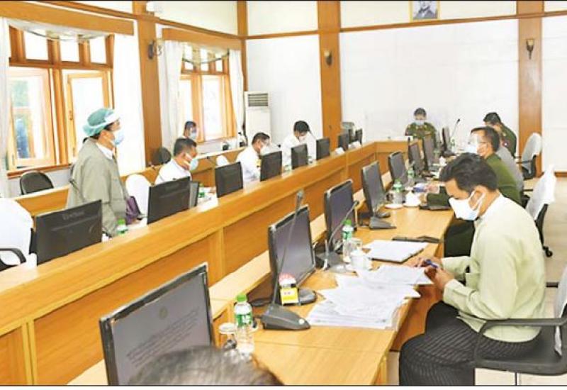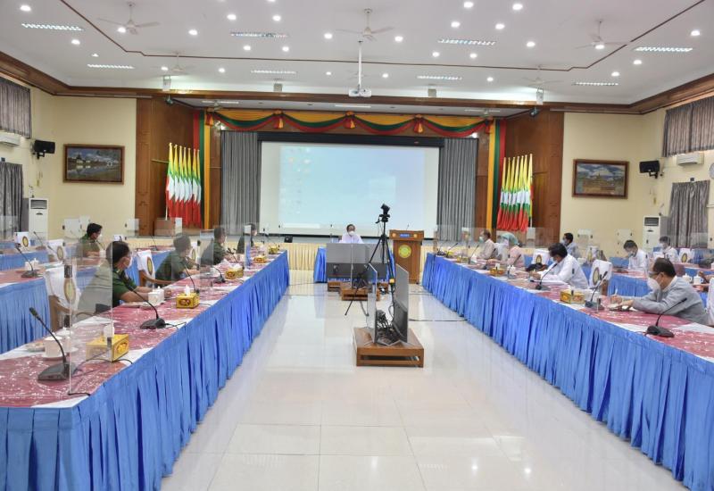 မန္တလေးတိုင်းဒေသကြီးအတွင်း ဆောင်ရွက်နေသည့် ကိုဗစ်-၁၉ ရောဂါ ကာကွယ်၊ ထိန်းချုပ်၊ ကုသရေး လုပ်ငန်းညှိနှိုင်းအစည်းအဝေးကို ယနေ့နံနက်ပိုင်းတွင် မန္တလေးတိုင်းဒေသကြီးစီမံအုပ်ချုပ်ရေးကောင်စီ ရုံး အစည်းအဝေးခန်းမ၌ ကျင်းပရာ အလယ်ပိုင်း တိုင်းစစ်ဌာနချုပ် တိုင်းမှူး ဗိုလ်ချုပ် ကိုကိုဦး၊ တိုင်း ဒေသကြီး စီမံအုပ်ချုပ်ရေးကောင်စီဝင်များ၊ ကျန်းမာ ရေးနှင့်အားကစားဝန်ကြီးဌာနမှ တာဝန်ရှိသူများ၊ မန္တလေးခရိုင် အထွေထွေအုပ်ချုပ်ရေးဦးစီးဌာနမှ တာဝန်ရှိသူများ တက်ရောက်ကြသည်။