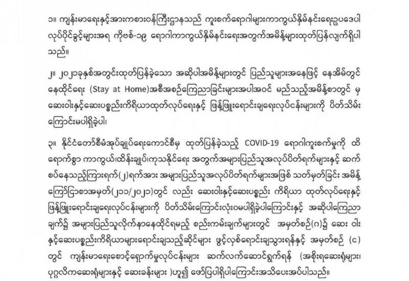 ကိုဗစ်-၁၉ကပ်ရောဂါသည် အရှိန်အဟုန်ကောင်းနေသည်။ ဇူလိုင် ၁၄ရက်ကရောဂါ ကူးစက်ဖြစ်ပွားမှုတွင် ဓာတ်ခွဲစစ်ဆေး အတည်ပြုပိုးတွေ့လူနာ ခုနစ်ထောင်ကျော် ရှိပြီး သေဆုံးလူနာ ၁၅၀ ခန့်ဖြင့် လွန်ခဲ့သည့်နေ့ထက် နှစ်ဆတိုး ဖြစ်ပေါ်ခဲ့သည်။ ယင်းအခြေအနေသည် ဆေးရုံတက် စစ်ဆေးကုသမှု အခြေအနေဖြစ်ပြီး ကိုဗစ်-၁၉ နှင့်ပတ်သက်၍ ရောဂါရှိသည်ဖြစ်စေ၊ တစ်စုံတစ်ရာ သံသယရှိလျှင်ဖြစ်စေ ဆေးရုံသို့ ရောက်မလာနိုင်ဘဲ ရောဂါဖြစ်ပွား၊ သေဆုံးနေကြသူများမှာ ယခုထက်ပင် ပိုမိုများပြားမည်ဟု ခန့်မှန်းရသည်။