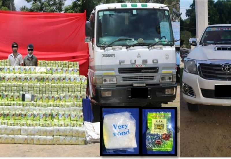ရှမ်းပြည်နယ်(တောင်ပိုင်း)၊ နမ့်စန်မြို့နယ်မှ မန္တလေးမြို့သို့ သယ်ဆောင်မည့် ငွေကျပ် ၃၂ ဘီလီယံ တန်ဖိုးရှိ အိုက်စ်(မက်သ်အဖက်တမင်း) အလေးချိန် ၁,၆၀၀ ကီလို ဖမ်းဆီးရမိခဲ့ကြောင်း မြန်မာနိုင်ငံရဲတပ်ဖွဲ့မှ သိရသည်။