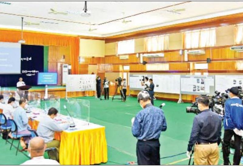 (ယမန်နေ့မှ အဆက်) ထို့နောက် ပြည်ထောင်စုရွေးကောက်ပွဲကော်မရှင် အဖွဲ့ဝင် ဦးခင်မောင်ဦးက ရှင်းလင်းပြောကြားရာတွင် နိုင်ငံတော်စီမံအုပ်ချုပ်ရေးကောင်စီ သတင်းထုတ်ပြန် ရေးအဖွဲ့ ၏ သတင်းစာရှင်းလင်းပွဲ အမှတ်စဉ် (၇/၂၀၂၁)သို့တက်ရောက်လာကြသည့် ဌာနဆိုင်ရာ တာဝန်ရှိ ပုဂ္ဂိုလ်များနှင့် သတင်းမီဒီယာသမား အားလုံးကို မင်္ဂလာပါဟု ဦးစွာနှုတ်ခွန်းဆက်ပါကြောင်း၊ မိမိအနေဖြင့် ပြည်ထောင်စုရွေးကောက်ပွဲ ကော်မရှင်၏ လုပ်ငန်းဆောင်ရွက်မှု အခြေအနေများနှင့် စပ်လျဉ်းပြီး ရှင်းလင်းတင်ပြသွားမည်ဖြစ်ကြောင်း၊ ရှင်းလင်းတင်ပြမည့် အကြောင်းအရာများမှာ မဲဆန္ဒရှင်စာရင်းများ စိစစ်ထုတ်ပြန် ပြီးစီးမှုအခြေအနေ၊ ဆန္ဒမဲလက်မှတ်များ မြေပြင်ကွင်းဆင်း စစ်ဆေး ထုတ်ပြန်ပြီးစီးမှုအခြေအနေနှင့် တွေ့ရှိရသည့် ဥပဒေနှင့်ညီညွတ်မှုမရှိသော ဆောင်ရွက် ချက်များ၊ ပြည်ထောင်စုရွေးကောက်ပွဲ ကော်မရှင်က ဆက်လက်ဆောင်ရွက်မည့် လုပ်ငန်း စဉ်များ ဖြစ်ပါကြောင်း။