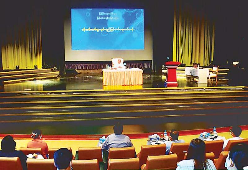 ပြန်ကြားရေးဝန်ကြီးဌာန ပြည်ထောင်စုဝန်ကြီး ဦးချစ်နိုင်သည် ယနေ့နံနက်ပိုင်းက နေပြည်တော် - တပ်ကုန်းရှိ မြန်မာ့အသံနှင့်ရုပ်မြင်သံကြားတွင် ဖွင့်လှစ်လျက်ရှိသော “ဝန်ထမ်းသစ်များ စွမ်းဆောင်ရည် သင်တန်း”၌ ဆွေးနွေးပို့ချမှု ပြုလုပ်သည်။