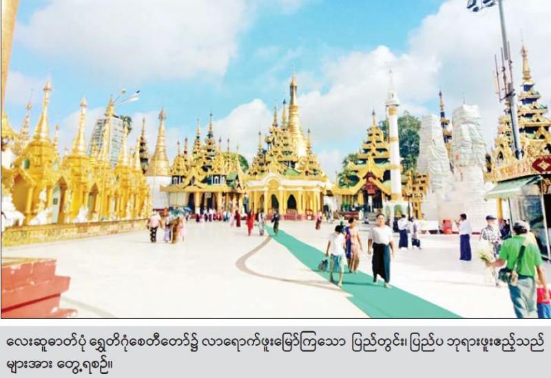 (၇၄)နှစ်မြောက် အာဇာနည်နေ့အခမ်းအနား ကျင်းပပြုလုပ်မည့် ဇူလိုင် ၁၉ ရက်(တနင်္လာနေ့) ၌ လေးဆူဓာတ်ပုံ ရွှေတိဂုံစေတီတော်မြတ်ကြီးအား အများပြည်သူ ဖူးမြော်ကြည်ညိုခွင့်ကို ယာယီတစ်ရက် ပိတ်ထားမည်ဖြစ်ရာ ဇူလိုင် ၂၀ ရက်မှစတင်၍ ယခင် အစီအစဉ်အတိုင်း ဖူးမြော်ခွင့်ပြန်လည်ဖွင့်လှစ်သွား မည်ဖြစ်ကြောင်း ရွှေတိဂုံစေတီတော် ဘဏ္ဍာတော်ထိန်း ဂေါပကအဖွဲ့မှ သိရသည်။