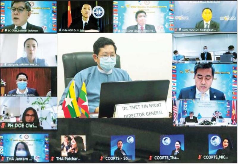 အရှေ့ဖျားအာရှနှင့် အရှေ့တောင် အာရှနိုင်ငံများ၏ဘူမိသိပ္ပံဆိုင်ရာ ပူးပေါင်းဆောင်ရွက်ရေးကော်မတီ (Coordinating Committee for Geoscience Programmes in East and Southeast Asia CCOP) ၏ (၇၆) ကြိမ်မြောက် ဦးဆောင်ကော်မတီ အစည်းအဝေး (The 76th CCOP Steering Committee Meeting) ကို ယနေ့ မွန်းလွဲ ၁၂ နာရီခွဲတွင် ထိုင်းနိုင်ငံ ဘန်ကောက်မြို့ရှိ (CCOP) ရုံးချုပ်မှ Virtual Meeting ဖြင့် ကျင်းပရာ CCOP အဖွဲ့ဝင် မြန်မာနိုင်ငံဆိုင်ရာ အမြဲတမ်း ကိုယ်စားလှယ် သယံဇာတနှင့် သဘာဝပတ်ဝန်းကျင် ထိန်းသိမ်းရေးဝန်ကြီးဌာန ဘူမိဗေဒလေ့လာရေးနှင့် ဓာတ်သတ္တုရှာဖွေရေး ဦးစီးဌာန ညွှန်ကြားရေးမှူးချုပ် ဒေါက်တာသက်တင်ညွန့် ပါဝင်တက်ရောက် ဆွေးနွေးသည်။