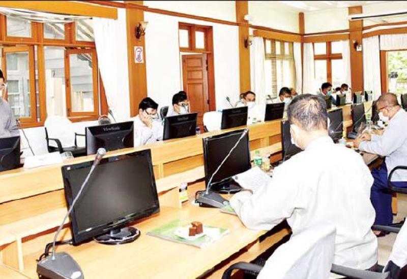 ကိုဗစ်-၁၉ ရောဂါ ကာကွယ်ထိန်းချုပ်ရေး လုပ်ငန်းညှိနှိုင်း အစည်းအဝေးကို ယနေ့နံနက်ပိုင်းတွင် ကျန်းမာရေးနှင့် အားကစားဝန်ကြီးဌာန၊ ရုံးအမှတ် (၄) အစည်းအဝေးခန်းမ၌ ကျင်းပသည်။