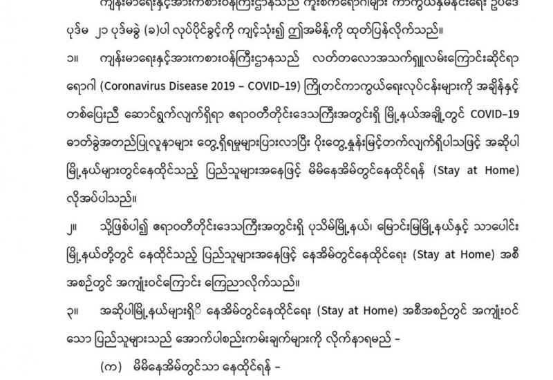 တိုင်းရင်းသားလူမျိုးများရေးရာဝန်ကြီးဌာန ပြည်ထောင်စုဝန်ကြီး ဦးစောထွန်းအောင်မြင့် သည် ယမန်နေ့က တိုင်းရင်းသားလူမျိုးများရေးရာဝန်ကြီးဌာန အစည်းအဝေးခန်းမ၌ ကိုဗစ်-၁၉ တားဆီးကာကွယ်ရေး၊ ကျန်းမာရေးဆိုင်ရာ ညွှန်ကြားချက်များနှင့်အညီ ပြည်ထောင်စုဝန်ကြီးရုံးနှင့် ဦးစီးဌာနများရှိ အရာထမ်းများကို ကိုဗစ်-၁၉ ကပ်ရောဂါကာကွယ်ရေးနှင့် ပတ်သက်၍ တွေ့ဆုံမှာကြားသည်။