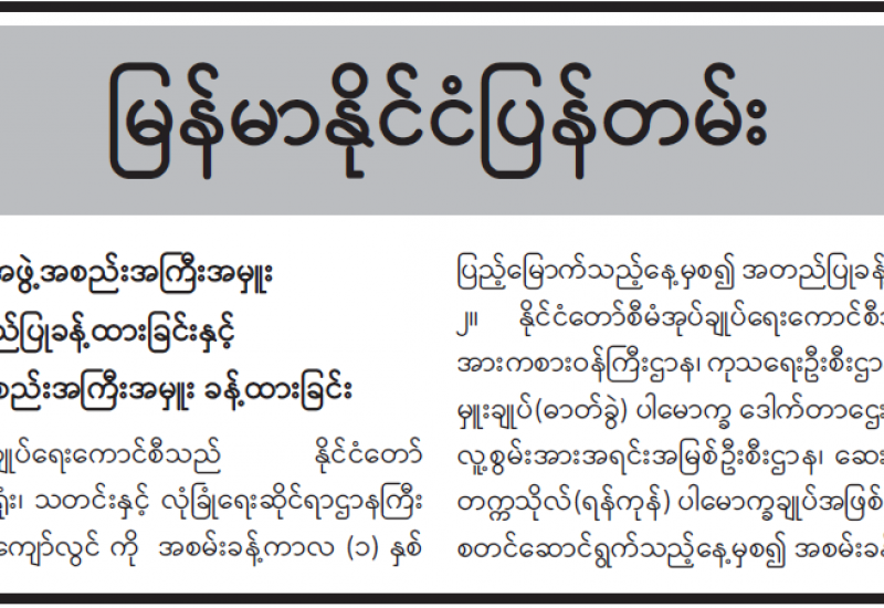 ကချင်ပြည်နယ်၊ မြစ်ကြီးနားနှင့် ဝိုင်းမော်မြို့နယ်တို့မှ ဒေသခံပြည်သူများကို ပန်းခင်းစီမံချက်ဖြင့် ဆောင်ရွက်ပြီးဖြစ်သည့် အိမ်ထောင်စုလူဦးရေစာရင်းနှင့် နိုင်ငံသားစိစစ်ရေးကတ်ပြားများ ပေးအပ်ပွဲကို ဇူလိုင် ၂ ရက်၊ နံနက် (၉)နာရီတွင် မြစ်ကြီးနားမြို့၊ မြို့တော်ခန်းမ၌ ကျင်းပသည်။
