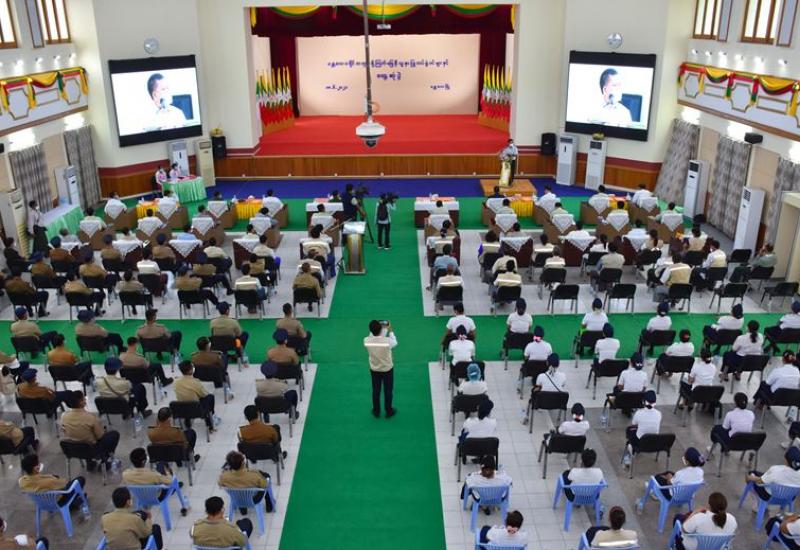 Coronavirus Disease 2019 (COVID-19)ထိန်းချုပ်ရေးနှင့် အရေးပေါ်တုံ့ပြန်ရေးကော်မတီ စတုတ္ထအကြိမ်လုပ်ငန်းညှိနှိုင်းအစည်းအဝေးကို ယနေ့ မွန်းလွဲ ၂ နာရီတွင် နေပြည်တော်ရှိ နိုင်ငံတော်စီမံအုပ်ချုပ်ရေးကောင်စီ ဥက္ကဋ္ဌရုံး အစည်းအဝေးခန်းမ၌ကျင်းပရာ Coronavirus Disease 2019 (COVID-19) ထိန်းချုပ်ရေးနှင့် အရေးပေါ်တုံ့ပြန်ရေးကော်မတီဥက္ကဋ္ဌ ၊ နိုင်ငံတော် စီမံအုပ်ချုပ်ရေးကောင်စီ ဒုတိယဥက္ကဋ္ဌ၊ ဒုတိယတပ်မတော်ကာကွယ်ရေးဦးစီးချုပ်၊ ကာကွယ်ရေး ဦးစီးချုပ် (ကြည်း) ဒုတိယဗိုလ်ချုပ်မှူးကြီး စိုးဝင်း တက်ရောက်အမှာစကား ပြောကြားသည်။