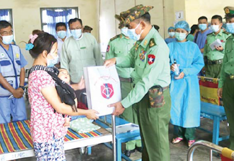 စစ်ကိုင်းတိုင်းဒေသကြီး တမူးမြို့ရှိ ဌာနဆိုင်ရာ ဝန်ထမ်းများနှင့် ဒေသခံပြည်သူများကိုကာကွယ်ရေး ဦးစီးချုပ်ရုံး (ကြည်း) မှ ဒုတိယဗိုလ်ချုပ်ကြီး ဖုန်းမြတ် နှင့် အဖွဲ့ဝင်များကတမူးမြို့ တပ်စခန်းရိပ်သာအစည်း အဝေးခန်းမ၌ ဇွန် ၁၃ ရက်က သွားရောက် တွေ့ဆုံ အမှာစကားပြောကြားပြီး တင်ပြချက်များအပေါ် လိုအပ်သည်များ ညှိနှိုင်းဆောင်ရွက်ပေးကာ စားသောက်ဖွယ်ရာများနှင့် Mask များကို ထောက်ပံ့ ပေးအပ်သည်။