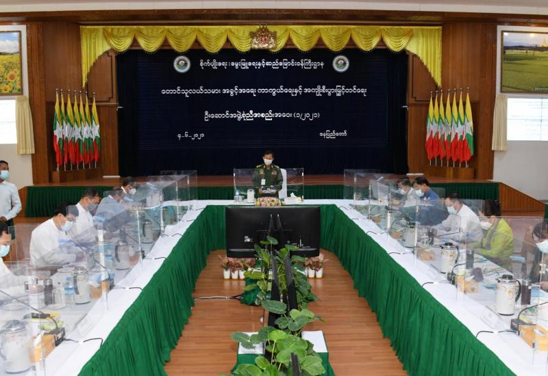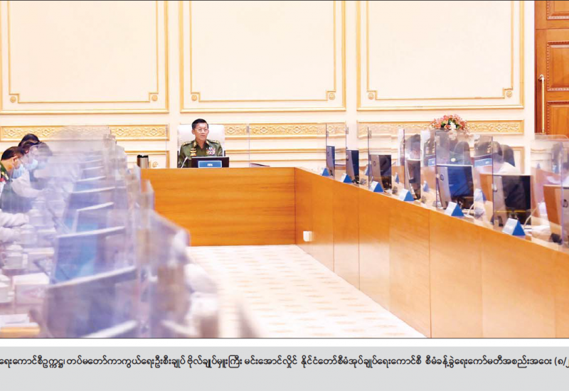 နိုင်ငံတော်စီမံအုပ်ချုပ်ရေးကောင်စီ စီမံခန့်ခွဲရေးကော်မတီ အစည်းအဝေး (၈/၂၀၂၁) ကို ယနေ့မွန်းလွဲပိုင်းတွင် နေပြည်တော်ရှိ နိုင်ငံတော်စီမံအုပ်ချုပ်ရေး ကောင်စီဥက္ကဋ္ဌရုံး အစည်းအဝေးခန်းမ၌ကျင်းပရာ နိုင်ငံတော်စီမံအုပ်ချုပ်ရေးကောင်စီ ဥက္ကဋ္ဌ၊ တပ်မတော်ကာကွယ်ရေးဦးစီးချုပ် ဗိုလ်ချုပ်မှူးကြီးမင်းအောင်လှိုင် တက်ရောက် အမှာစကား ပြောကြားသည်။