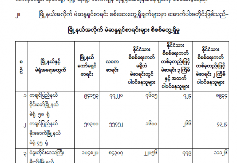 (၂-၆-၂၀၂၁) ရက်နေ့၊ ည (၈:၀၀) နာရီမှ (၃-၆-၂၀၂၁) ရက်နေ့၊ ည (၈:၀၀) နာရီအတွင်း ဓာတ်ခွဲနမူနာစုစုပေါင်း (၁,၄၄၈) ခုအား စစ်ဆေးပြီးစီးခဲ့ရာ COVID-19 ရောဂါ ဓာတ်ခွဲအတည်ပြု လူနာသစ် (၁၂၂) ဦး တွေ့ရှိရပါသည်။ သို့ဖြစ်ပါ၍ ယနေ့အထိ ဓာတ်ခွဲနမူနာ စုစုပေါင်း (၂,၆၂၆,၄၆၈) ခုအား စစ်ဆေးခဲ့ပြီး COVID-19 ဓာတ်ခွဲအတည်ပြုလူနာ စုစုပေါင်း (၁၄၃,၉၄၅) ဦး ရှိပြီ ဖြစ်ပါသည်။