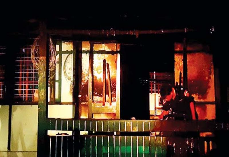 စစ်ကိုင်းတိုင်းဒေသကြီး၊ မုံရွာမြို့၊ အောင်ချမ်းသာရပ်ကွက်၊ အမှတ်(၅) အခြေခံပညာ အထက်တန်းကျောင်းအား မေ ၁၇ ရက်ည ၁၁ နာရီ ၂၀ မိနစ်ခန့်တွင် အကြမ်းဖက်သူများ၏ မီးရှို့မှုကြောင့် မီးလောင်မှုဖြစ်ပွားခဲ့ကြောင်း သိရှိရသည်။