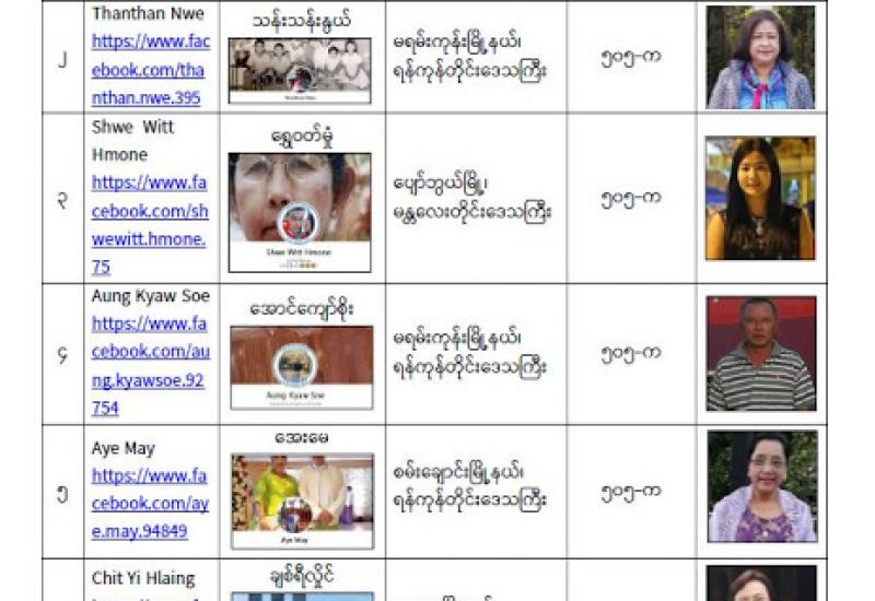 နိုင်ငံတော်၏ အုပ်ချုပ်မှုယန္တရားပျက်ပြားစေရန်ရည်ရွက်ချက်ဖြင့် နိုင်ငံ့ဝန်ထမ်းများအား CDM လှုပ်ရှားမှုတွင် ပါဝင်စေရန်လှုံ့ဆော်ခြင်း၊ CRPH မတရားအသင်းအား ထောက်ခံသည့် အကြောင်းအရာများ၊ မမှန်သတင်းများ အားဖြန့်ဝေခြင်း၊ နိုင်ငံတော်တည်ငြိမ်အေးချမ်းမှုကို ပျက်ပြားစေပြီး ဆူပူအုံကြွမှုဖြစ်ပေါ်စေရန်နှင့် အများပြည်သူ အထိတ်တလန့်ဖြစ်စေရန် အတွက် သွေးထိုးလှုံ့ဆော်မှုများပြုလုပ်ခြင်း၊ Social Pumishment ပြုလုပ်ခြင်းများကို လူမှုကွန်ရက် စာမျက်နှာများတွင် ရည်ရွယ်ချက်ရှိရှိ ဖြင့်ဖော်ပြခြင်းနှင့် ဖြန့်ဝေခြင်းများ ဆောင်ရွက် လျက်ရှိသည့် အောက်ဖော်ပြပါ အနုပညာရှင်အချို့နှင့် အခြားပါဝင်ပတ်သက်သူများအား ရာဇသတ်ကြီးပုဒ်မ ၅၀၅-က ဖြင့် အမှုဖွင့်အရေးယူ ဆောင်ရွက်လျက်ရှိပါသည်။