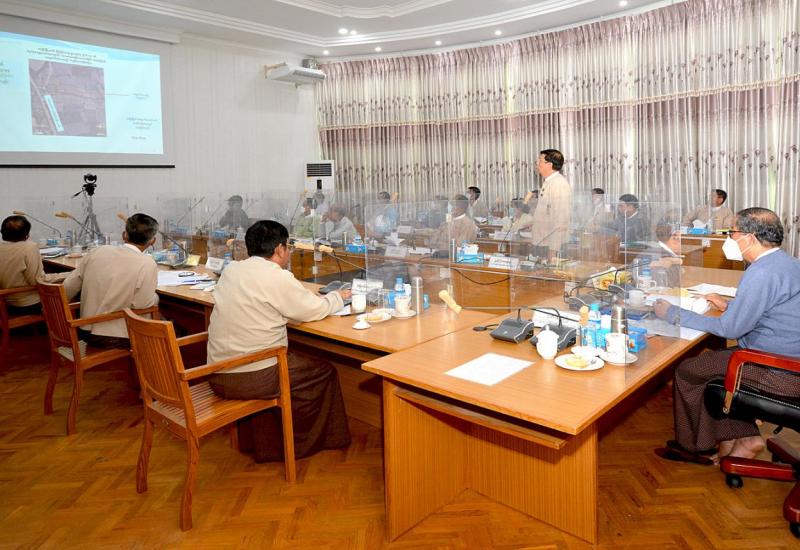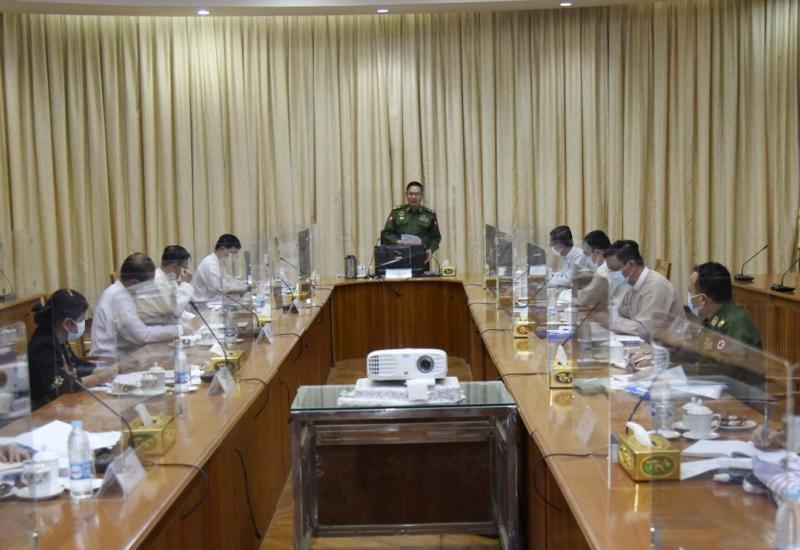 ကုန်သွယ်မှုနှင့် ကုန်စည်စီးဆင်းမှုများ မှန်ကန်မြန်ဆန်စေရေး ဗဟိုကော်မတီ အစည်းအဝေး (၃/၂၀၂၁) ကို ယနေ့ မွန်းလွဲ ၂ နာရီတွင် နေပြည်တော်ရှိ နိုင်ငံတော် စီမံအုပ်ချုပ်ရေးကောင်စီအုပ်ချုပ်မှုရုံး အစည်းအဝေးခန်းမ၌ ကျင်းပရာ နိုင်ငံတော် စီမံအုပ်ချုပ်ရေးကောင်စီဝင် ကုန်သွယ်မှုနှင့် ကုန်စည်စီးဆင်းမှုများ မှန်ကန်မြန်ဆန်စေရေး ဗဟိုကော်မတီဥက္ကဋ္ဌ ဒုတိယဗိုလ်ချုပ်ကြီး မိုးမြင့်ထွန်း တက်ရောက်အမှာစကား ပြောကြားသည်။