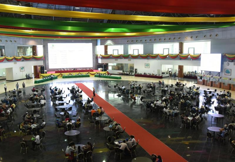 ပုလဲအတွဲများနှင့် ကျောက်မျက်ရတနာများ မြန်မာကျပ်ငွေဖြင့် ရောင်းချပွဲ နဝမနေ့ကို ယနေ့နံနက်ပိုင်းတွင် နေပြည်တော်ရှိ မဏိရတနာ ကျောက်စိမ်းခန်းမ၌ ကိုဗစ် - ၁၉ ကာကွယ်ရေးလမ်းညွှန်ချက်များနှင့်အညီ ဆက်လက် ကျင်းပသည်။