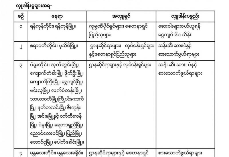 ရန်ကုန်တိုင်းဒေသကြီး၊ လသာမြို့နယ်၌ အများပြည်သူသုံးလမ်းမကြီးပေါ်တွင် ကားဟွန်းသံရှည်တီးကာ လက်သုံးချောင်းထောင်၍ ဆူပူဆန္ဒပြသူကို ဖမ်းဆီးအရေးယူ ခဲ့ကြောင်း မြန်မာနိုင်ငံရဲတပ်ဖွဲ့၏ သတင်းထုတ်ပြန်ချက်အရ သိရသည်။
