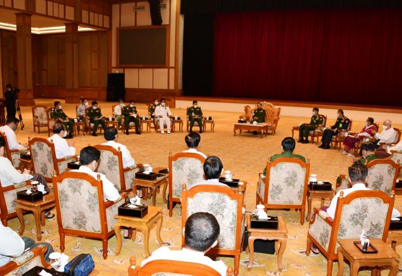 နိုင်ငံတော်စီမံအုပ်ချုပ်ရေးကောင်စီဥက္ကဋ္ဌ၊ တပ်မတော်ကာကွယ်ရေးဦးစီးချုပ် ဗိုလ်ချုပ်မှူးကြီး မင်းအောင်လှိုင်သည် ယနေ့နံနက်ပိုင်းတွင် နေပြည်တော်ရှိ နိုင်ငံတော် သမ္မတအိမ်တော် ငုရွှေဝါခန်းမ၌ မြန်မာနိုင်ငံဘဏ်များအသင်း နာယက၊ ဥက္ကဋ္ဌနှင့် တာဝန်ရှိသူများ၊ ပုဂ္ဂလိက ဘဏ်များမှ ဥက္ကဋ္ဌများ၊ ဒုတိယဥက္ကဋ္ဌများ၊ တာဝန်ရှိသူများနှင့် တွေ့ဆုံသည်။