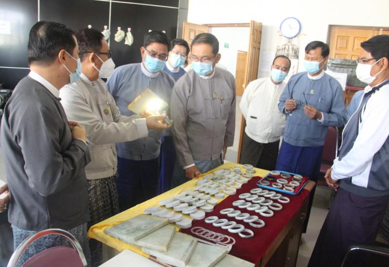 သယံဇာတနှင့် သဘာဝပတ်ဝန်းကျင် ထိန်းသိမ်းရေးဝန်ကြီးဌာန၊ ပြည်ထောင်စုဝန်ကြီး ဦးခင်မောင်ရီသည် အမြဲတမ်းအတွင်းဝန် ဦးမင်းမင်းဦး၊ တာဝန်ရှိသူများနှင့်အတူ ယနေ့ နံနက်ပိုင်းတွင် နေပြည်တော် ပြည်ထောင်စုနယ်မြေ၊ ဒက္ခိဏသီရိမြို့နယ်ရှိ မြန်မာနိုင်ငံ ကျောက်မျက်ရတနာ လုပ်ငန်းရှင်များအသင်းက တည်ဆောက်ဖွင့်လှစ်ထားသည့် မြန်မာ့ ကျောက်မျက်ရတနာ သင်တန်းကျောင်းကို ကြည့်ရှုစစ်ဆေးသည်။