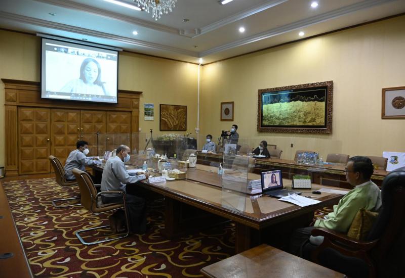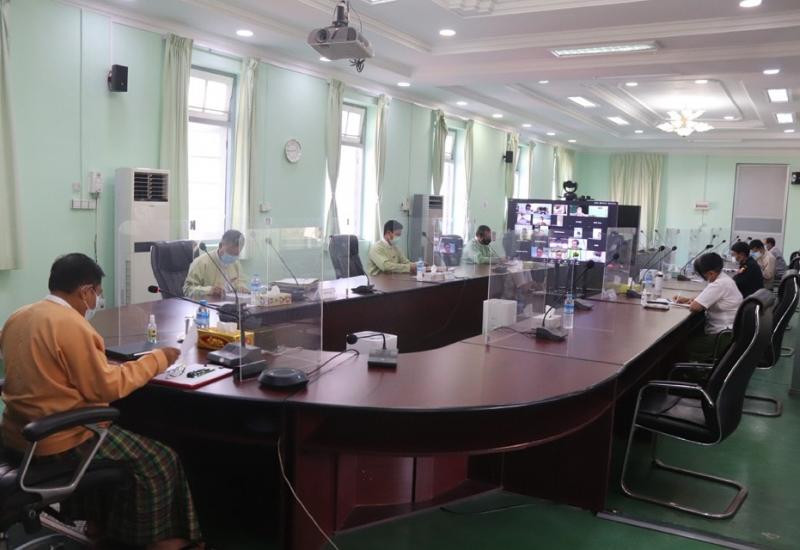 ပဲခူးတိုင်းဒေသကြီးအစိုးရအဖွဲ့ရုံး၊ တော်ဝင်ဟံသာခန်းမ၌ ဒီဇင်ဘာ ၃ ရက်နေ့ မွန်းလွဲ ၂ နာရီက တင်ဒါလုပ်ငန်းဆိုင်ရာ ညှိနှိုင်းအစည်းအဝေးအား Online Meeting စနစ်ဖြင့် ကျင်းပခဲ့သည်။