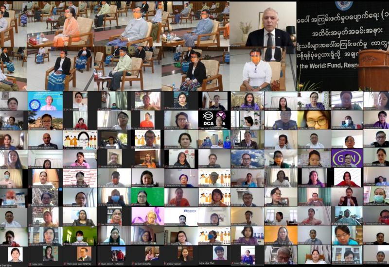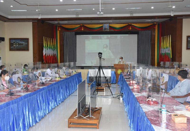အမျိုးသားကျန်းမာရေးစီမံကိန်း (၂၀၁၇-၂၀၂၁) အကောင်အထည်ဖော်ခြင်း ဆန်းစစ်သုံးသပ်မှု တင်ပြ ဆွေးနွေးခြင်း အစည်းအဝေးကို ယနေ့ နံနက်ပိုင်းတွင် ဗီဒီယိုကွန်ဖရင့် စနစ်ဖြင့် ကျန်းမာရေး နှင့် အားကစားဝန်ကြီးဌာန၌ ကျင်းပသည်။