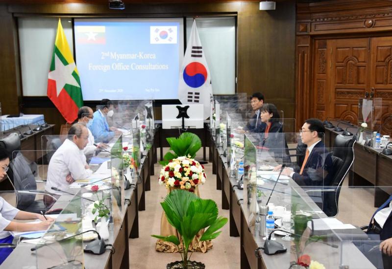 မြန်မာနိုင်ငံနှင့် ကိုရီးယားသမ္မတနိုင်ငံတို့၏ နှစ်နိုင်ငံ နိုင်ငံခြားရေးဝန်ကြီးဌာနများ အကြား ပူးပေါင်းဆောင်ရွက်ရေးဆိုင်ရာ ဒုတိယအကြိမ် ညှိနှိုင်းအစည်းအဝေးကို ယနေ့မွန်းလွဲ ပိုင်းတွင် နေပြည်တော်ရှိ နိုင်ငံခြားရေးဝန်ကြီးဌာန၌ ကျင်းပသည်။ အစည်းအဝေးကို နိုင်ငံခြား ရေးဝန်ကြီးဌာန အမြဲတမ်းအတွင်းဝန် ဦးချမ်းအေးနှင့် ကိုရီးယားသမ္မတနိုင်ငံ၊ နိုင်ငံခြားဝန်ကြီး ဌာန၊ နိုင်ငံရေးရာ ဒုတိယဝန်ကြီး မစ္စတာ ကင်မ်ဂွန်း တို့က ဦးဆောင် ကျင်းပကြသည်။