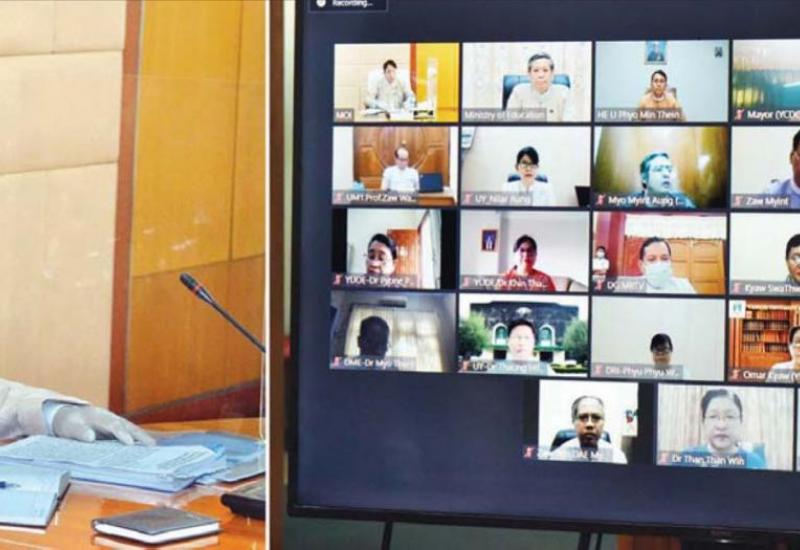 ရန်ကုန်တက္ကသိုလ် နှစ်(၁၀၀)ပြည့် ရာပြည့်သဘင်အခမ်းအနား Virtual Event ဖြင့် အောင်မြင်စွာကျင်းပနိုင်ရေး အကြိုညှိနှိုင်း အစည်းအဝေးကို ယနေ့နံနက် ၁၀ နာရီတွင် ပြန်ကြား ရေးဝန်ကြီးဌာန၊ ပညာရေးဝန်ကြီးဌာနနှင့် ရန်ကုန်တိုင်းဒေသကြီးအစိုးရ အဖွဲ့တို့ ပူးပေါင်း၍ ဗီဒီယိုကွန်ဖရင့် စနစ်ဖြင့် ကျင်းပသည်။
